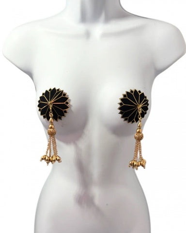 DITA VON TEESE Deco Dame Velvet and Gold Pasties With Removable Hand-Beaded Tassels (2 Pieces) - Black