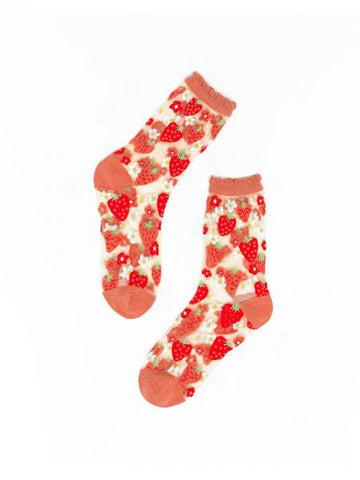 SOCK CANDY - STRAWBERRY DAISY RUFFLE SHEER CREW SOCK
