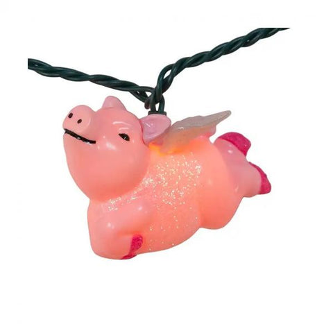 Bring some farm style fun to your holiday or party décor with this set of flying pig lights from Kurt Adler! Each of the 10 clear incandescent lights have an adorable flying pig designed light cover, detailed from the snout to the feet.
