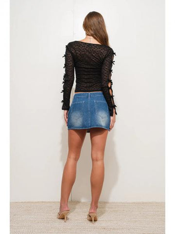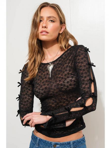 PRETTY GARBAGE - BOW TRIM LACE TOP - BLACK