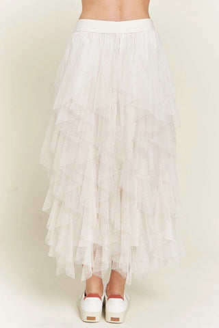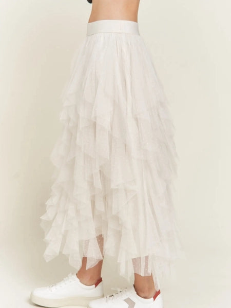 JADE BY JANE - LAYERED POLKA DOT MESH LINED A-LINE MIDI SKIRT - IVORY