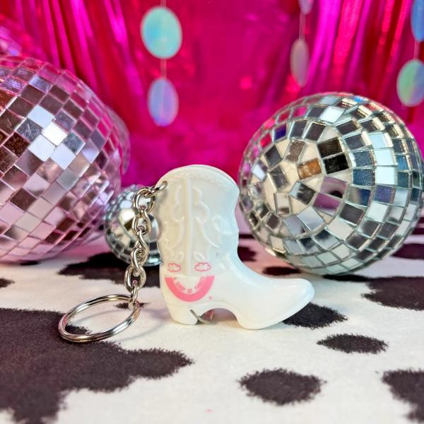 Shaped like a cowboy boot, these keychains feature a bottle opening mechanism on the bottom. Perfect for the honky tonk!