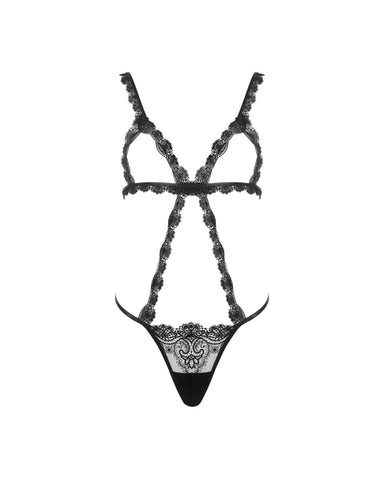 The Arella Open Bodysuit in black is a daring piece designed to ignite your sensuality. Featuring open cups and an unapologetically bold silhouette, this open bodysuit is crafted in intricate lace that traces the body's natural curves with fearless style.