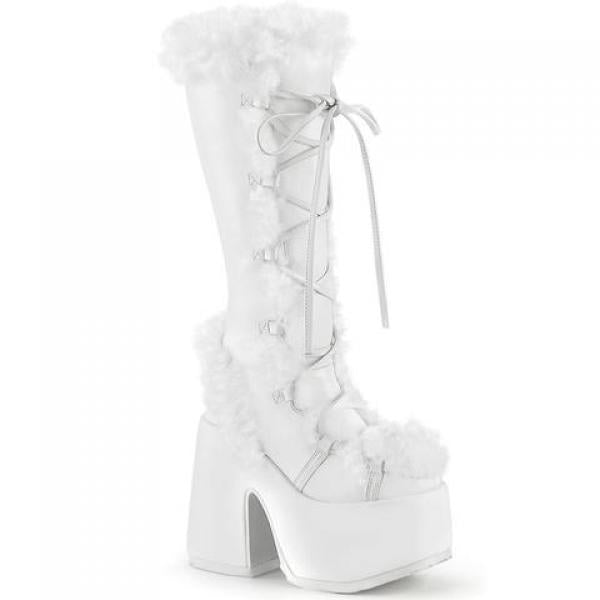 5" (12.7cm) Platform Goth Punk Gogo Faux Fur Lining and Upper Detail Knee Boot, Full Inner Side Zip Closure