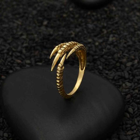 This adjustable bird claw ring offers your customers a way to honor the huntress within. While this fierce bird talon could be owl, crow, or falcon, there's no question it is from a hunter. With three claws on one side, and a single claw on the other, this bird claw ring is full of life-like detail, and is a dream to wear. Honor your inner warrior when you wear this ring.