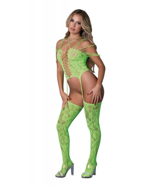 SEAMLESS STRAPPY BODYSTOCKING - LIME - ONE SIZE