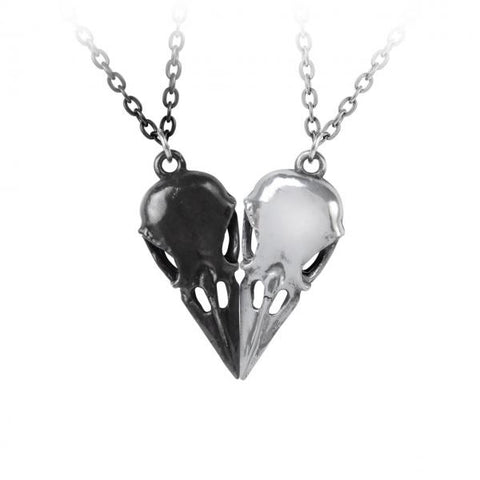 Two complimenting raven's skulls; when together they're a discreet heart of bone - when apart, a covert token of a netherworld affair.