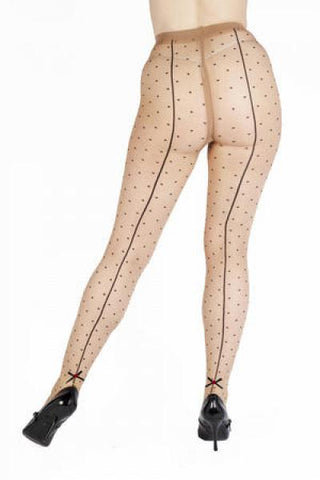 DOTTY SEAMED TIGHTS WITH BOW - LIGHT BEIGE/BLACK
