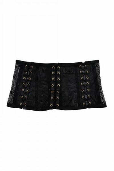 Lace-up your lingerie! The Florence set is for steamy nights. Geometric, circular lace is featured all over, which contrasts with the lace up detail around this waspie. The laces are made up from elastic string, perfect for getting your dream look.