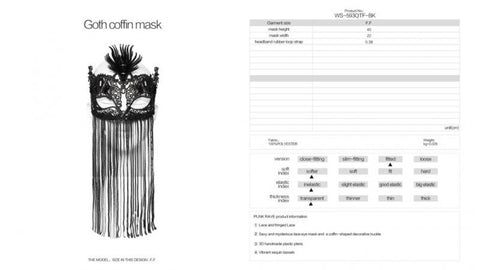 Gothic Coffin Mask with Fringe Lace - Black