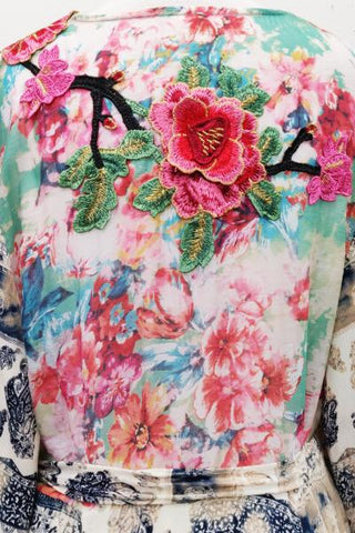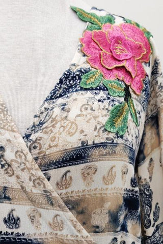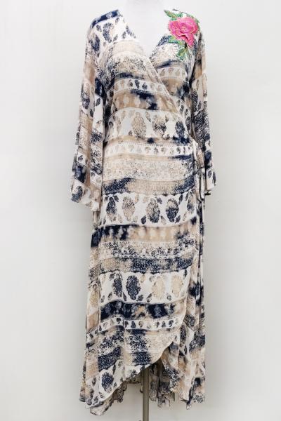 - Wrap dress with floral patch