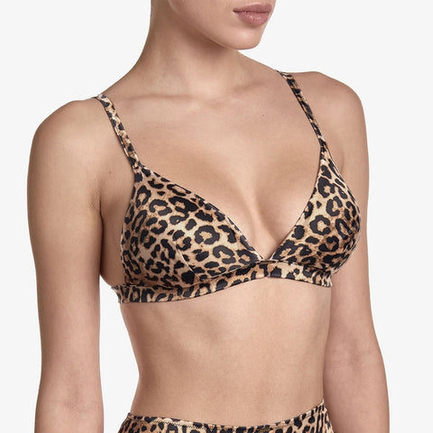 This second-skin bralette is the epitome of understated elegance for your comfort. Made of satin with a subtle leopard print, it will be your secret symbol of confidence. With no underwire and delicate foam inserts, it provides the perfect shape and weightless support. Thin, adjustable straps complete the look, adding lightness. Complete your choice with a satin belt and thong from the same line for a complete set. Composition: Polyester 88%, elastane 12%