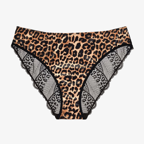 These classic mid-rise briefs are the perfect combination of comfort and elegance. A play of contrasts that catches the eye: silky smooth leopard-print satin on the front and seductive lace on the back with the same predatory pattern. The comfortable cotton gusset ensures maximum comfort, allowing you to feel great all day long. Composition: 69% polyamide, 16% elastane, 6% viscose, 1% polyester, 8% cotton