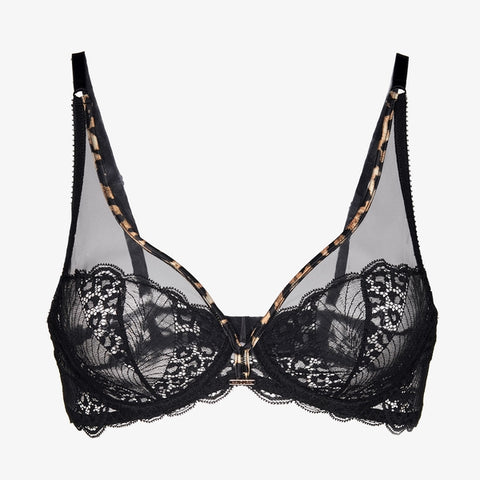 This bra is the perfect combination of impeccable support and refined tenderness. Its cups are a play of contrasts: a weightless translucent mesh on top and exquisite lace with a predatory leopard pattern on the bottom. Thanks to the soft cup without foam and reliable underwire, it provides a comfortable fit, emphasizing the natural beauty of your shapes. Adjustable straps allow you to create the perfect position so that you feel unbeatable at any moment. Composition: polyamide 72%, elastane 18%, viscose 8%, polyester 2%
