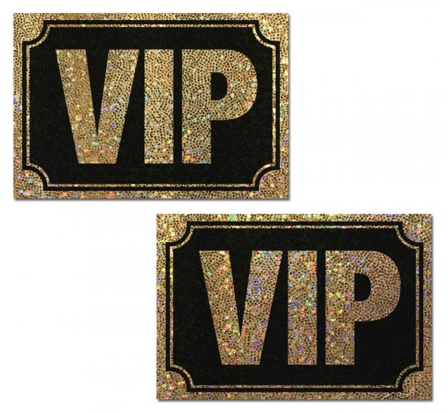 VIP: Gold Glitter VIP on Liquid Black Nipple Pasties by Pastease®