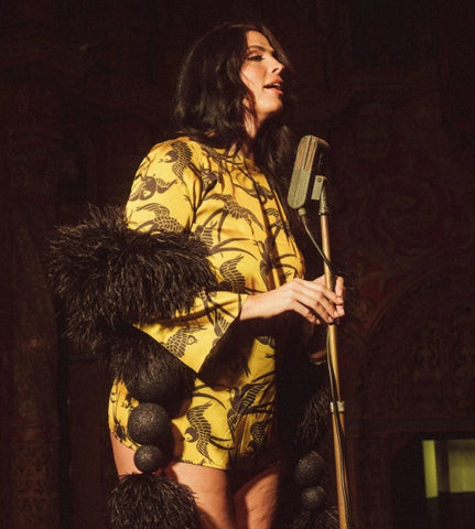 Our fave new style! Meet the Cowl Back Mini Slip! Meant to wear lounging at home or out on the town. Made with our insanely soft simulated silk satin charmeuse, digitally printed with our exclusive Antique Swallows print. Featuring an A-line silhouette, bell shaped sleeves, and a cowl detail at back with ties at back neck.